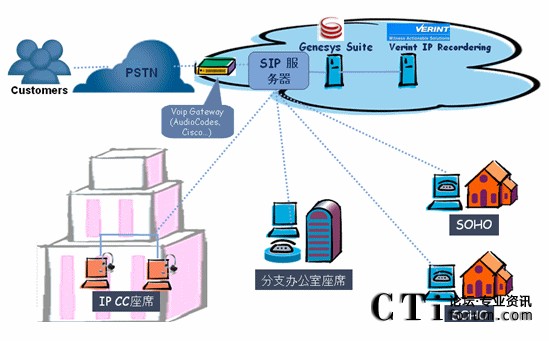 客戶不再需要考慮位置,降低系統(tǒng)因位置而造成的復(fù)雜性。如分支機構(gòu)、專家、soho等座席資源也可便捷利用。Genesys