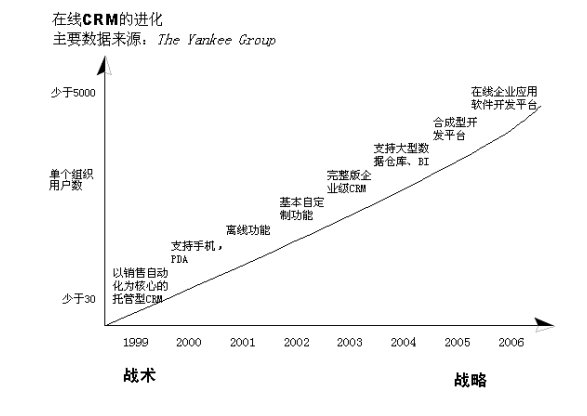 在中國(guó),托管型CRM在未來(lái)一段時(shí)間的增長(zhǎng)速度將超過(guò)傳統(tǒng)CRM早期,保持高速增長(zhǎng)態(tài)勢(shì)。托管型軟件的On-demand特性讓用戶(hù)更容易上手,WAP手機(jī)版、在線開(kāi)發(fā)平臺(tái)等傳統(tǒng)企管軟件無(wú)法比擬。在價(jià)格上,托管型軟件的優(yōu)勢(shì)更是傳統(tǒng)型無(wú)法相比。根據(jù)國(guó)內(nèi)首家托管型CRM運(yùn)營(yíng)商八百客公布的數(shù)據(jù),在過(guò)去1年多時(shí)間里,其注冊(cè)企業(yè)用戶(hù)數(shù)已超過(guò)1萬(wàn)家。