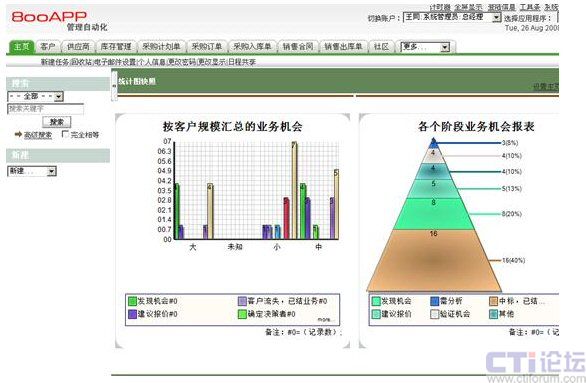2.更突出商業(yè)機(jī)會(huì)管理:從管理客戶的線索及側(cè)重點(diǎn)來看:ERP以訂單管理為線索,注重內(nèi)部資源整合,而CRM強(qiáng)調(diào)以客戶為中心,注重客戶資源探取;從管理方法來說:ERP注重銷售結(jié)果,CRM注重銷售過程管理,對(duì)大量未成交商機(jī)(項(xiàng)目)管理,及時(shí)監(jiān)控商機(jī)(項(xiàng)目)的進(jìn)展?fàn)顩r;從客戶信息采集來說:ERP的銷售管理系統(tǒng)通常只是簡(jiǎn)單的記錄了客戶的聯(lián)系信息,而CRM不僅管理客戶的聯(lián)系信息,還管理客戶的背景信息、特征信息以及關(guān)鍵聯(lián)系人的家庭背景、工作歷史、休閑愛好、金錢價(jià)值觀等信息,還包括大量潛在客戶在內(nèi)的全公司整體客戶信息;從管理的具體內(nèi)容來看:ERP的銷售管理系統(tǒng)主要管理客戶聯(lián)系信息及訂單信息,而CRM卻管理客戶資源、市場(chǎng)信息、銷售過程信息、報(bào)價(jià)、合同、競(jìng)爭(zhēng)對(duì)手、售后服務(wù)等大量信息。800CRM以客戶為“中心”,以商業(yè)機(jī)會(huì)為主線,提供自動(dòng)化銷售工具,按照行業(yè)標(biāo)準(zhǔn)、國(guó)際標(biāo)準(zhǔn)提供銷售解決方案,幫助企業(yè)獲得更多客戶價(jià)值。
