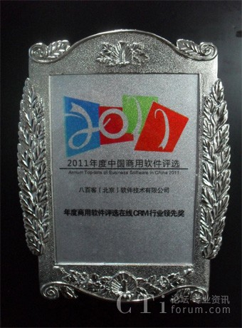 CTI論壇(ctiforum)12月20日消息(記者 張潔): 12月9日,以“模式創(chuàng)新帶動產(chǎn)業(yè)及應用轉型”為主題的“信息化領袖峰會暨商用軟件評選頒獎大會”在上海隆重舉行。本次大會分四個環(huán)節(jié)進行,其中最重要的環(huán)節(jié)莫過于揭曉“2011年度中國商用軟件評選”結果,作為全球領先的企業(yè)管理軟件供應商八百客(www.800app.com)成功斬獲2011年度中國商用軟件評選“在線CRM行業(yè)領先獎”。同時,八百客的三位企業(yè)用戶美國宣偉涂料公司的潘總、上海企盈投資管理有限公司的何總、華圖教育的王總分別獲得 “2011年度信息化貢獻人物獎”大獎。