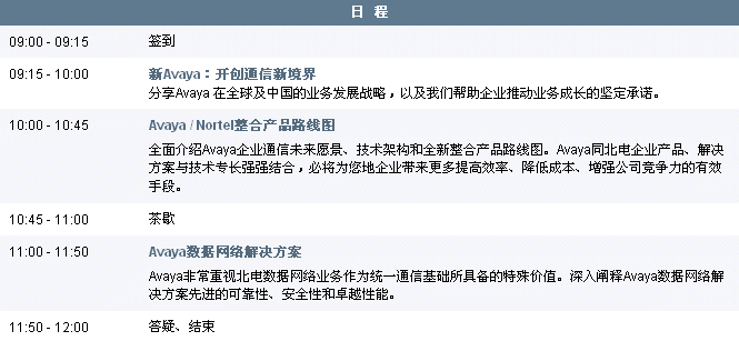 | Avaya/Nortel整合產(chǎn)品線渠道招募會(huì)10城市 2010-03-16 |