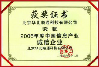 2007年1月16日,由中國計算機用戶協(xié)會(簡稱CCUA)主辦的“中國計算機用戶協(xié)會2006年度企業(yè)及產(chǎn)品推介頒獎大會” 在北京世紀金源大飯店隆重召開,通過對中國境內(nèi)從事IT產(chǎn)品生產(chǎn)、銷售、集成和服務(wù)企業(yè)的經(jīng)營規(guī)模、服務(wù)能力、產(chǎn)品使用效果、企業(yè)誠信和持續(xù)發(fā)展能力等多項指標進行綜合評定,揭曉了中國信息產(chǎn)業(yè)2006年度優(yōu)秀企業(yè)評選與產(chǎn)品推介活動結(jié)果。華北工控憑借其在業(yè)內(nèi)深入人心的影響,再次獲得“2006年度中國信息產(chǎn)業(yè)誠信企業(yè)獎”和“2007年度中國信息產(chǎn)業(yè)行業(yè)采購首選品牌”。