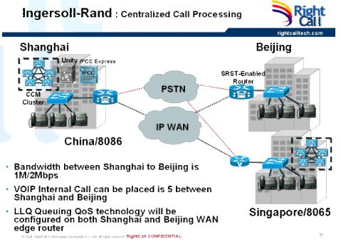鑒于總部IP語音系統(tǒng)的主要問題,必須為英格索蘭重新規(guī)劃和部署基于集中式呼叫處理應(yīng)用架構(gòu)的思科IP語音通信系統(tǒng):