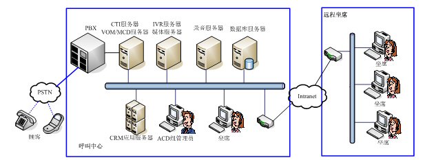 VOM MCD系統(tǒng)是一個獨(dú)立于PBX之外的智能路由系統(tǒng),從設(shè)計之初,就采用開放的技術(shù)標(biāo)準(zhǔn)和協(xié)議,支持各種主流的PBX,支持VOIP功能,實現(xiàn)遠(yuǎn)程坐席管理以及分布式呼叫中心的集中管理。