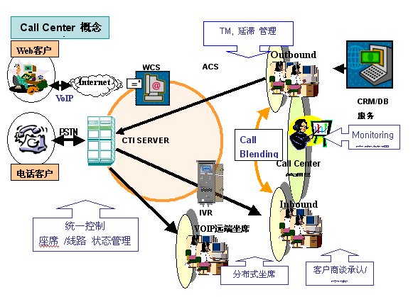 CallCenter系列CTI中間件產(chǎn)品包括:ACD智能路由分配;IVR多媒體語音交互應答;IVRBuilder業(yè)務生成解釋子系統(tǒng);CallManager統(tǒng)一控制臺;CMS系統(tǒng)實時監(jiān)控;管理者統(tǒng)計報表系統(tǒng);ACS計劃呼叫管理;RecordManager全程錄音管理;SoftPhone座席應用工具;VOIP遠端座席;WEB呼叫服務;CRM集成開發(fā)平臺。