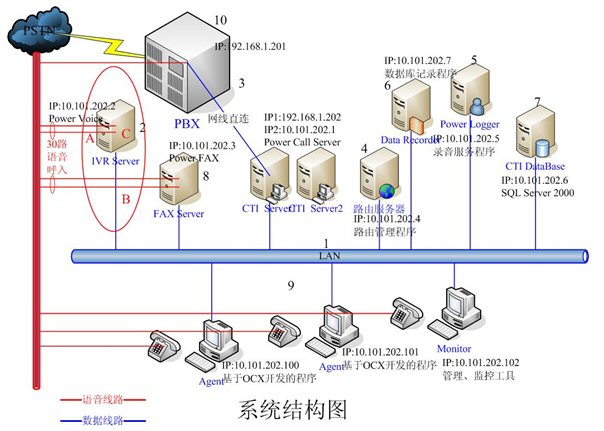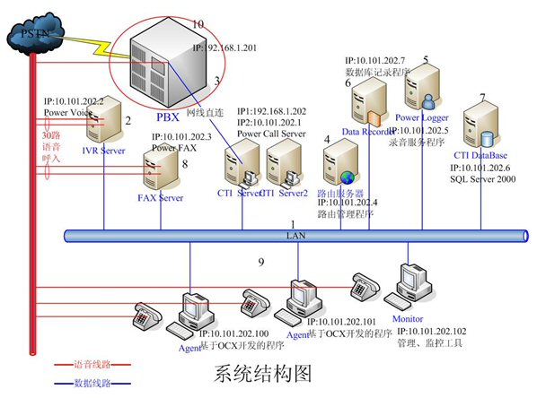 良好的網(wǎng)絡是呼叫中心良好運行的必要條件,因此PCS推薦服務器之間的連接為100M網(wǎng)絡,坐席PC與服務器之間的連接為10M即可。