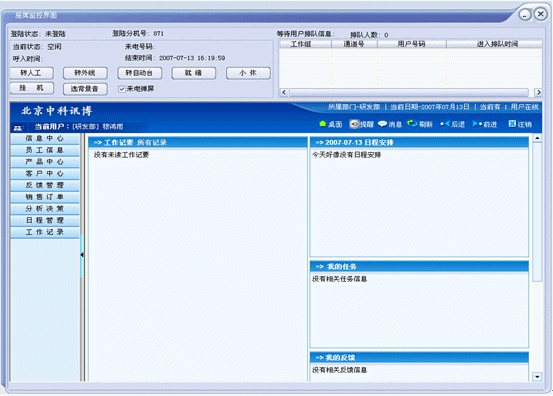 多種排隊(duì)機(jī)制,所有來電排隊(duì)信息都有顯示,提供對來電上移、下移、移到最前或轉(zhuǎn)自動臺處理等多種可選擇的排隊(duì)功能,來電可根據(jù)服務(wù)要求,選擇不同的服務(wù)部門及人員,系統(tǒng)都做了優(yōu)化處理