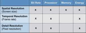 盡管移動視頻設備的處理能力一代比一代強大,但用手持設備捕獲的HD或SD視頻全都需要處理,這樣才能被網(wǎng)絡服務器上的終端設備播放。表1給出了不同視頻編碼參數(shù)對解碼設備所需資源選擇的大致影響。該表專門對采用運動補償與離散余弦變換(DCT)技術實現(xiàn)視頻壓縮的基于塊的視頻編解碼器進行了分析。