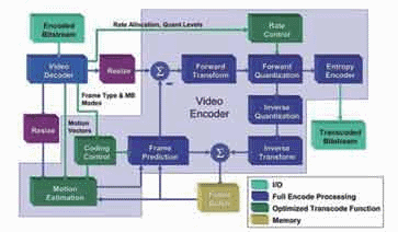 過去幾年來,業(yè)界針對轉(zhuǎn)碼工作提出了幾種不同的方法,可提高處理與存儲器資源的使用效率。大多數(shù)這種方案都建立在這樣一種認識基礎之上,即我們能通過更先進的技術對初始編碼過程中創(chuàng)建的量子化和頻率域信息進行修改,更好地加以利用,摒棄其中無用的東西,而不必簡單地對原始視頻內(nèi)容進行重構。