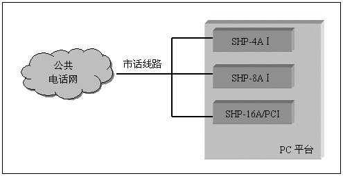 單純的語(yǔ)音系統(tǒng)(不需要座席,傳真等附加功能),可以采用SHP-4A、SHP-8A和SHP-16A系列的模擬線語(yǔ)音卡來(lái)構(gòu)成,并且不需要連接卡間交換總線,這類系統(tǒng)如證券電話委托系統(tǒng),語(yǔ)音信箱留言系統(tǒng),銀行稅務(wù)查詢催繳系統(tǒng)等,其典型系統(tǒng)結(jié)構(gòu)如下: