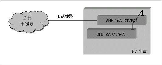 通道數(shù)較多的大中型應(yīng)用系統(tǒng),一般采用數(shù)字中繼線(E1)接入公共電話網(wǎng),三匯公司的SHD系列數(shù)字中繼卡可以提供相應(yīng)的解決方案。SHD系列數(shù)字中繼在一塊卡上集成了E1線接口,語(yǔ)音資源,信令處理等所必須的全部功能,其接入信令處理模塊可處理中國(guó)1號(hào)信令(SS1),7號(hào)信令(SS7),ISDN PRI協(xié)議(DSS1),單塊卡最多可支持4個(gè)E1接入。通過(guò)CT-BUS(或ST-BUS)總線,還可以在數(shù)字中繼線上實(shí)現(xiàn)傳真功能。典型應(yīng)用結(jié)構(gòu)如下圖: