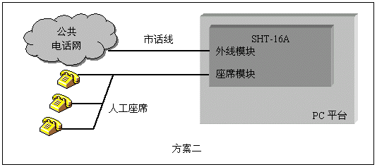 人工座席是呼叫中心(Call Center)一類應(yīng)用的主要組成部分。三匯語(yǔ)音卡對(duì)人工座席提供了兩套解決方案:使用SHU系列座席卡,通過(guò)交換總線與其它卡互聯(lián),為整個(gè)系統(tǒng)提供座席資源。使用SHT系列模塊化語(yǔ)音卡,在部分通道使用座席模塊,可用單塊卡實(shí)現(xiàn)座席和外線系統(tǒng)。第二種方式特別適用于小型呼叫中心,總機(jī)話務(wù)員等應(yīng)用。三匯公司的座席通道可以直接連接各類普通電話機(jī),利用座席卡配置相應(yīng)的軟件,還可以構(gòu)成板卡交換機(jī),完全取代企業(yè)用戶交換機(jī)。這類應(yīng)用的典型結(jié)構(gòu)如下圖: