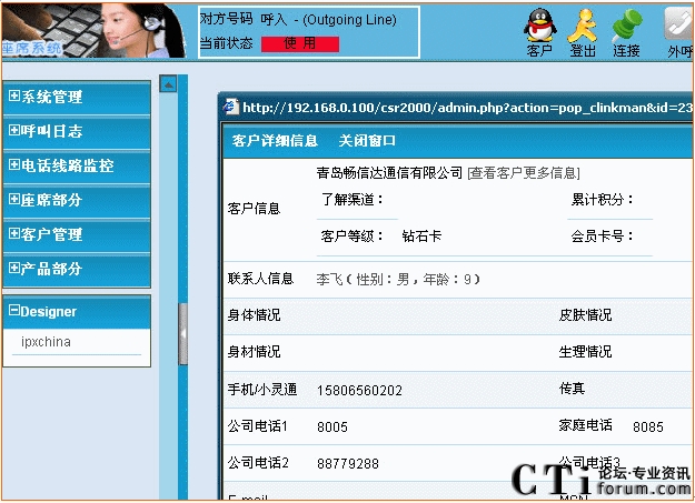 維護人員在局域網(wǎng)絡環(huán)境下,通過自己PC機的瀏覽器的頁面即可完成對呼叫中心系統(tǒng)的管理和維護: