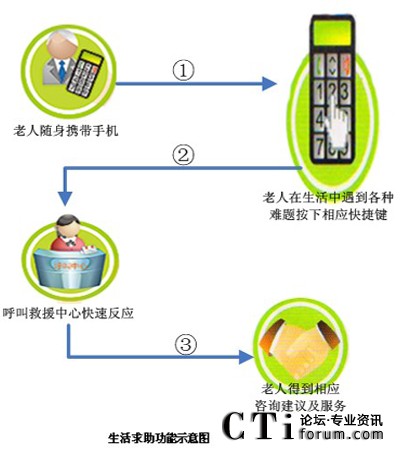 老人使用不記任何電話號,按下紅鍵(盲人按粗糙鍵)就可發(fā)送緊急求救信號;按下綠鍵可以發(fā)送求助信號,求助信息根據(jù)用戶需要在同一時間發(fā)送到信息服務(wù)中心、社區(qū)網(wǎng)格管理員、老人指定親屬、物業(yè)公司、及有關(guān)部門,可實現(xiàn)完整信息獲取和快速響應(yīng),啟動多方通話進行緊急調(diào)度,保障老人的生命財產(chǎn)安全。
