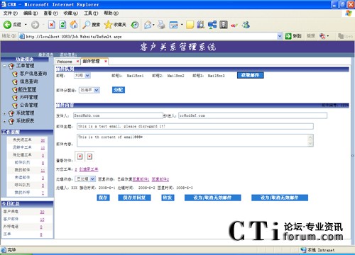 系統(tǒng)支持多個郵件隊列的管理,用戶可以根據(jù)業(yè)務的需要在系統(tǒng)管理中進行郵箱設置。同時系統(tǒng)也支持多種模式的郵件處理,系統(tǒng)自動分配、組長手動分配以及座席手動獲取,以適應不同業(yè)務的需要。