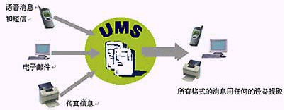 通常,UM系統(tǒng)的定義是:UM系統(tǒng)(Unified Messaging System,UMS)是為各種消息(語音、E-mail、傳真、數據),提供一個單一的多媒體郵箱。該郵箱可以從一臺個人計算機、電話或者手機獲取。另外,UMS讓使用者能夠容易地生成和發(fā)送任何類型的消息,并提供智能化消息管理。