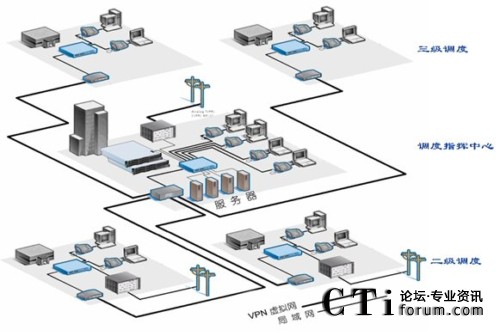 根據實際情況,總部可以部署調度控制中心,遠端部署二級調度和三級調度終端,PSTN網關可以根據實際需要部署在任一點位。
