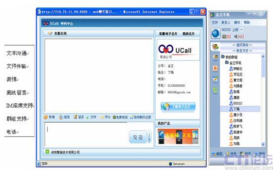 支持包括IM(即時通訊)、短信等跟語音的融合。座席人員可以同時使用IM、電話、短信等跟用戶溝通。