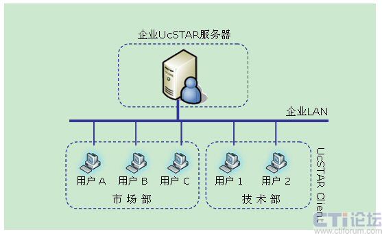 UcSTAR:Unified Communication Star,是擎旗技術(shù)研發(fā)的統(tǒng)一通信平臺,它為企業(yè)提供多種通訊手段(企業(yè)即時通信、視頻、語音、郵件、短信、電話、MSN/QQ互通等),并可融合企業(yè)的各種應(yīng)用系統(tǒng)(OA、ERP、CRM、網(wǎng)站、電子商務(wù)系統(tǒng)等);將企業(yè)對外溝通、銷售和服務(wù)、對內(nèi)溝通和協(xié)作無縫整合;輕松實現(xiàn)無地域/時間限制的,可管理、可控制、可擴展的,集內(nèi)外部溝通、服務(wù)和銷售一體化的統(tǒng)一工作平臺。此外,它也可被分離應(yīng)用為企業(yè)IM及實時協(xié)作系統(tǒng)、多媒體呼叫中心系統(tǒng)、專業(yè)級的IP視頻會議系統(tǒng)等。