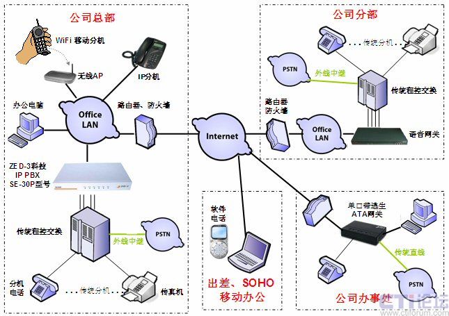 采用SE30系列的IP語音媒體交換機(jī)搭建辦公語音通信平臺,簡化了原先繁雜的語音通信系統(tǒng),可以輕而易舉地集成到用戶現(xiàn)有的網(wǎng)絡(luò)中,節(jié)省了大量的網(wǎng)絡(luò)改造成本及通訊費(fèi)用。部署快捷、管理方便、功能強(qiáng)大、應(yīng)用靈活、降低成本等優(yōu)勢明顯;特別適用于出差、家庭辦公、移動辦公頻繁的現(xiàn)代中小型企業(yè)用戶,極容易實(shí)現(xiàn)多點(diǎn)異地VoIP組網(wǎng)應(yīng)用。