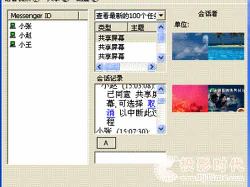 清揚(yáng)即時通信與視頻會議軟件: 通過視頻會議,只要坐在計(jì)算機(jī)前,就可以與本地或者外地,固定或者移動,局域網(wǎng)或者廣域網(wǎng)的同事們進(jìn)行跨地域空間的卻又面對面的視頻會議。通過屏幕共享,坐電腦前能夠觀看遠(yuǎn)程的電腦操作,也可以操作電腦讓遠(yuǎn)程電腦觀看;通過共享播放,把VCD教育片播放給遠(yuǎn)程電腦觀看,也可以收看遠(yuǎn)程的播放;通過即時通信,把通知瞬間發(fā)布到所有同事,也可以把文件瞬間傳送給大家,還能夠接受來自同事的通知信息和文件;通過遠(yuǎn)程協(xié)助,可以求助同事遠(yuǎn)程操作自己的電腦等等,……,有了清揚(yáng)即時通信與視頻會議,遠(yuǎn)在天涯的辦公室已近在眼前,移動辦公和異地辦公也不再有隔閡。