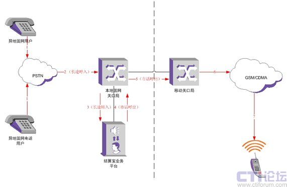 異地本網(wǎng)(例如太原鐵通)用戶呼叫本地移動(dòng)(例如杭州移動(dòng))用戶,系統(tǒng)會(huì)經(jīng)過杭州的關(guān)口局將該呼叫送至移動(dòng)的關(guān)口局。結(jié)算寶業(yè)務(wù)平臺(tái)掛接在本地關(guān)口局上,攔截這類呼叫,并將長途號(hào)碼替換為本地號(hào)碼,然后通過本地關(guān)口局轉(zhuǎn)呼出去。