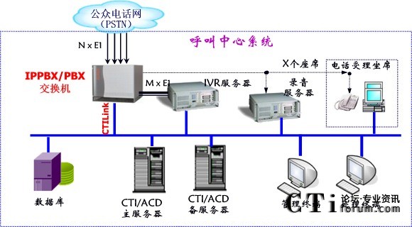 核心控制層——提供系統(tǒng)的CTI核心控制功能,負責(zé)協(xié)調(diào)各個周邊模塊的工作。還包括一個智能呼叫路由功能的ACD系統(tǒng)、自動語音處理的IVR系統(tǒng)。