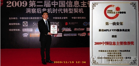 CTI論壇(ctiforum)11月25日消息(記者 張塵):2009年11月19日,2009年中國信息主管年會在北京世紀(jì)金源大飯店盛大召開,會議共吸引了各行業(yè)千名CIO線上與線下的參與。作為中國CIO云集的高峰會議,第一線安萊全程參與了本次大會,從產(chǎn)品方案與展示等方面向業(yè)界展示了第一線安萊10年多來在MPLS VPN服務(wù)領(lǐng)域的最佳實踐經(jīng)驗與卓越的市場領(lǐng)導(dǎo)地位,贏得了各與會嘉賓及CIO們的普遍認同和稱贊。