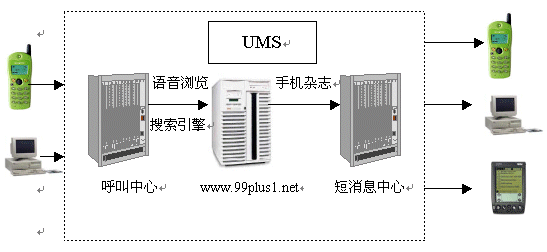 “99+1”統(tǒng)一消息網(wǎng)(以下簡稱“99+1”)是基于統(tǒng)一消息服務(wù)(UMS)平臺,應(yīng)用呼叫中心服務(wù)方式,針對移動用戶,以“99+1”網(wǎng)站為中心服務(wù)渠道,融合了先進(jìn)的語音合成和語音識別技術(shù),充分實現(xiàn)了話音、數(shù)據(jù)、短消息等全方位服務(wù)方式的綜合信息服務(wù)網(wǎng)絡(luò)。