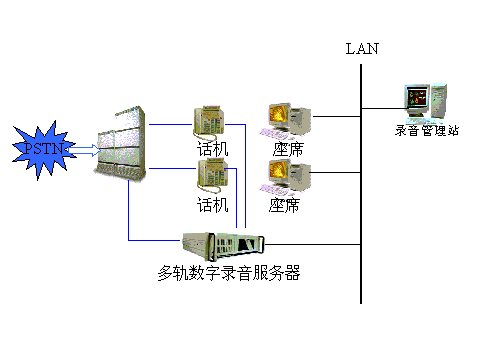 一、 錄音系統(tǒng)概念: 在通訊領域中,電話網(wǎng)范圍已經普及到中國的各個角落成為主要的通信手段,通過電話人們可以相互溝通,傳達信息,通話過程中錄制有效的信息越來越得到各企事業(yè)的重視。在商務服務領域,各行業(yè)建設了客戶服務中心既"呼叫中心"代替?zhèn)鹘y(tǒng)的柜臺業(yè)務,通過錄音記錄業(yè)務代表的服務質量對其進行監(jiān)督和考核以便提高企業(yè)的名譽;在政府安全部門對一些重點監(jiān)控對象的往來通信進行錄音和實時監(jiān)聽,以及對某些重要指令錄音。