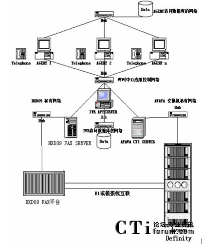 根據(jù)客服系統(tǒng)的容量,坐席多特點(diǎn),一般都采用國(guó)外品牌交換機(jī)做為接入設(shè)備,用HXD09設(shè)備作FAX或IVR系統(tǒng)?头臉I(yè)務(wù)主要為語音和傳真。HXD09系統(tǒng)在傳真和語音處理處理上在國(guó)內(nèi)產(chǎn)品的技術(shù)和價(jià)格上都有巨大優(yōu)勢(shì)。