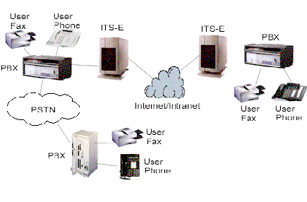 許多公司有多個(gè)辦公地點(diǎn),各地之間有著頻繁的通訊往來,電話和傳真。典型地,通訊涉及到公用交換電話網(wǎng)(PSTN)或PBX間的私人連接路線。Internet電話服務(wù)器(ITS-E)提供了另一選擇。基本原理是一處用戶撥打的電話經(jīng)本地PBX路由到本地ITS-E,本地ITS-E通過IP網(wǎng)絡(luò)送到目的地ITS-E,目的地ITS-E再將電話送到目的地PBX上,最后送到目的地電話或傳真機(jī)上。