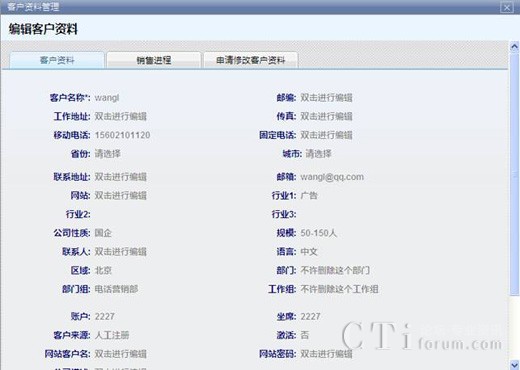 新添加的客戶會(huì)出現(xiàn)在客戶列表中。雙擊任一條客戶信息,可以查看其詳細(xì)的客戶資料。也可以根據(jù)業(yè)務(wù)需要對(duì)客戶執(zhí)行“釋放”或“黑名單”功能。