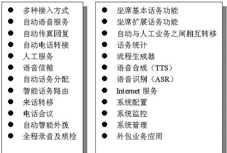 交互式語音應(yīng)答及傳真系統(tǒng)(IVR/IFR) IVR(Interactive Voice Response,交互式語音應(yīng)答)以及IFR(Interactive Fax Response,交互式傳真應(yīng)答)應(yīng)用軟件主要完成系統(tǒng)語音引導(dǎo)、語音交互式語音應(yīng)答、收發(fā)傳真等功能。IVR的使用節(jié)省了人工接續(xù)時(shí)間,使呼叫中心效率大幅度提高,大大降低了運(yùn)營成本。在IVR/IFR這方面的產(chǎn)品,HOLLYCRM有HollyIVR。HollyIVR是成熟的電信級IVR/IFR應(yīng)用軟件產(chǎn)品,可以實(shí)現(xiàn)自動(dòng)語音引導(dǎo)、語音交互式語音應(yīng)答、收發(fā)傳真、圖形化流程開發(fā)、系統(tǒng)監(jiān)控管理、自動(dòng)外撥、TTS/ASR等功能,在電信級和企業(yè)級等數(shù)幾十個(gè)不同規(guī)模的呼叫中心系統(tǒng)中被廣泛使用 。
