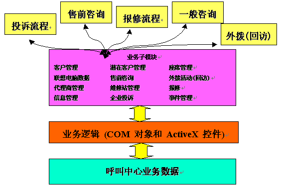 在此中心指導思想之下,惠普咨詢又結(jié)合聯(lián)想電腦公司的業(yè)務特點,所設計的呼叫中心涵蓋了廣泛功能,包括: