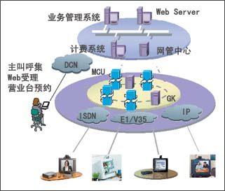 運(yùn)營(yíng)支撐層與視訊交換層可以兼容各個(gè)視訊終端生產(chǎn)廠家提供的滿(mǎn)足標(biāo)準(zhǔn)的終端,在視訊實(shí)現(xiàn)層為電信運(yùn)營(yíng)商的客戶(hù)提供多種方便的預(yù)約手段,并推出“主叫呼集”功能,使用戶(hù)能夠方便地自主召集各種視訊業(yè)務(wù)!耙豢ǘ嗵(hào)”方便用戶(hù)付費(fèi)、使用;全面的級(jí)連MCU主席控制能力使用戶(hù)能靈活操縱視訊業(yè)務(wù)的進(jìn)行!爸鹘泻艏、“一卡多號(hào)”等功能的提供,使復(fù)雜的視訊業(yè)務(wù)真正成為電信運(yùn)營(yíng)商滿(mǎn)足大客戶(hù)、適應(yīng)電信市場(chǎng)發(fā)展的“傻瓜化”業(yè)務(wù)。