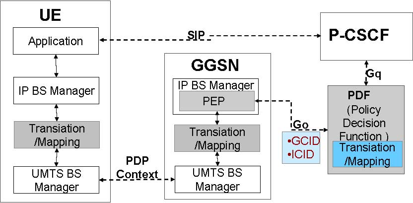 。3)PDF對(duì)IP流進(jìn)行記錄(包括流標(biāo)識(shí)符(GCID)、數(shù)據(jù)速率、QoS類(lèi)別等)并授權(quán)。通過(guò)SDP參數(shù)映射到所授權(quán)的IPQoS參數(shù)而實(shí)現(xiàn),并通過(guò)GO接口(COPS協(xié)議)傳送到GGSN。