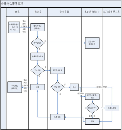 后臺處理座席員根據(jù)業(yè)務(wù)知識、資料庫和管理職責為市民服務(wù),如果不能處理,將請求提交相關(guān)政府部門并限時處理;