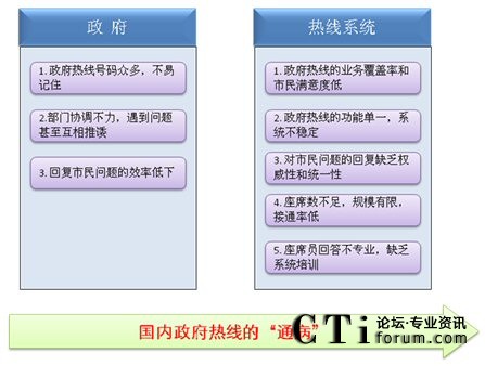 深圳市原有政府熱線(xiàn)所反映的問(wèn)題并非孤立,由于時(shí)代和技術(shù)的局限性,國(guó)內(nèi)其它的一些政府熱線(xiàn)也同樣面臨著諸多問(wèn)題,具體如下: