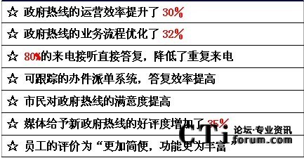 在我們的采訪(fǎng)中,深圳市政府認(rèn)為,建設(shè)法治政府、廉潔政府、效率政府、有限政府、陽(yáng)光政府和責(zé)任政府,前提是政府必須完成轉(zhuǎn)型。政府行政體制改革的最終目標(biāo)是要達(dá)到行政權(quán)力規(guī)范,服務(wù)型的一個(gè)政府。因而,為市民提供專(zhuān)業(yè)權(quán)威和有效的政府熱線(xiàn)服務(wù)成為題中之意。通過(guò)深圳市12345政府熱線(xiàn)的成功應(yīng)用,我們可以體會(huì)到呼叫中心應(yīng)用于政府及公用事業(yè)部門(mén)后,受益的不僅是千百萬(wàn)公眾,更重要的是加速了在社會(huì)急劇變革時(shí)代政府職能的現(xiàn)代化轉(zhuǎn)型。