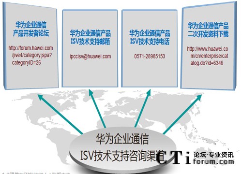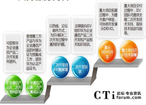 華為企業(yè)通信ISV技術(shù)支持團(tuán)隊成立亍2008年1月,開放了論壇、郵件和電話三種求劣咨詢渠道,為ISV廠商提供二次開發(fā)技術(shù)支持,幵定期在網(wǎng)站和論壇發(fā)布二次開發(fā)的Demo和經(jīng)驗案例。