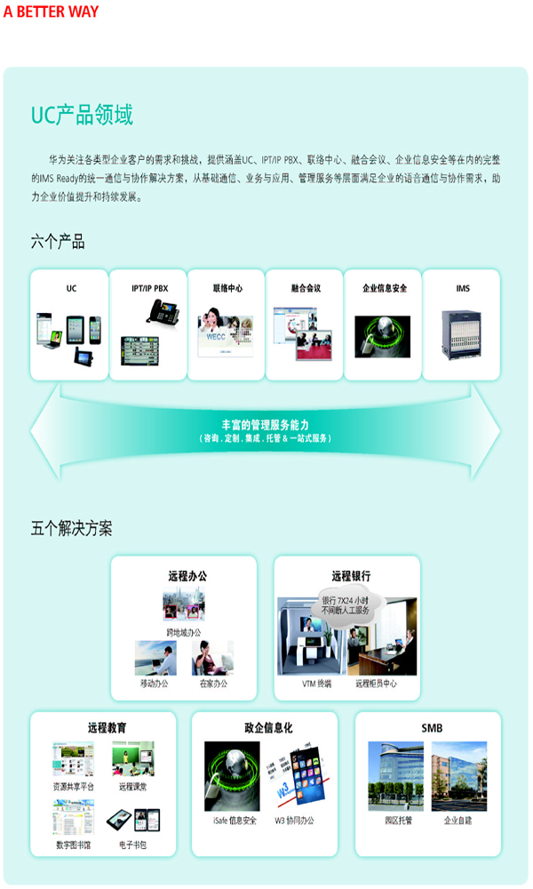 華為是全球領(lǐng)先的信息與通信解決方案供應商。為適應信息行業(yè)正在發(fā)生的革命性變化,華為做出面向客戶的戰(zhàn)略調(diào)整,華為的創(chuàng)新將從電信運營商網(wǎng)絡(luò)向企業(yè)業(yè)務(wù)、消費者領(lǐng)域延伸,協(xié)同發(fā)展“云-管-端”業(yè)務(wù)。