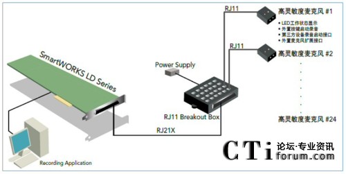 MIC BOX還可以通過連接在Breakout Box的多個(gè)麥克風(fēng)輕松實(shí)現(xiàn)多方分離錄音,再利用LD板卡強(qiáng)大的數(shù)字混音功能,可以把多方分離的語音文件完美的合成到一個(gè)語音文件中,使MIC