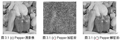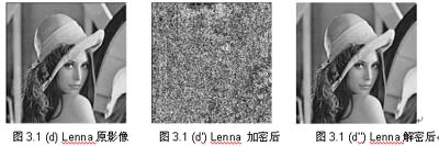 加密過后的影像,不論以人類的視覺直接觀看,或計(jì)算其碎形維度D (Fractal Dimension),都顯示影像達(dá)到完全混亂的程度。(2)