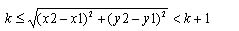 其中f(x1, y1),f(x2, y2)為圖中距離大于k、小于k+1的任兩點(diǎn)的值,即x1、y1、x2、及y2要符合下列式(3.2)的判斷式。又npn(k)代表的是,圖中所有符合上列條件的點(diǎn)對(duì)數(shù)。