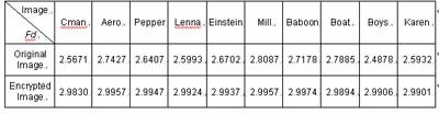 | 表3.1 圖片原始影像與加密過后影像之碎性維度 (Fractal Dimension) |