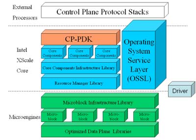 Loader都包在Redboot內(nèi);Redboot及BSP可以通過Intel IXA SDK得到幫忙,建立以XScale為處理核心的操作系統(tǒng)平臺,最后這三大要素即可建立一個(gè)完整的網(wǎng)絡(luò)處理器平臺。