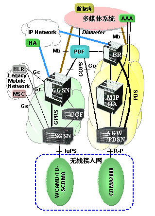 PDS采用MIP技術(shù),是支持多媒體的和傳統(tǒng)的移動數(shù)據(jù)業(yè)務(wù)的網(wǎng)絡(luò)。AGW包括PDSN以及其他一些所需要的功能,提供了對各種接入網(wǎng)絡(luò)的公共接口。它提供移動IP登記和鑒權(quán),支持外部代理(FA)和分組數(shù)據(jù)傳輸,切換、AAA客戶端、QoS管理和策略執(zhí)行等功能。歸屬代理(HA)主要完成用戶當(dāng)前附著點(diǎn)的登記和用戶IP包的前轉(zhuǎn)兩大功能。