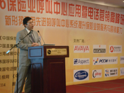 。。2006年10月18日,2006保險(xiǎn)業(yè)呼叫中心應(yīng)用暨電話營(yíng)銷(xiāo)高峰研討會(huì)在北京天鴻科園大酒店隆重召開(kāi),以下是K8主題演講實(shí)錄: