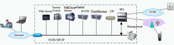 Web800電信級解決方案為電信運營商以ASP的模式運營800業(yè)務(wù)提供了良好的解決途徑。該方案要求電信運營商安裝Web800 Server、媒體網(wǎng)關(guān)、數(shù)據(jù)庫等系統(tǒng)核心部件、AAA Server,挑選IP IVR等作為可選部件。Web800無需更新原有的系統(tǒng)設(shè)施,就可與傳統(tǒng)的800號業(yè)務(wù)進(jìn)行融合;系統(tǒng)在完成遠(yuǎn)程的IP網(wǎng)絡(luò)傳輸過程后,經(jīng)過IP網(wǎng)關(guān),即接入原有傳統(tǒng)800系統(tǒng),將遠(yuǎn)程呼叫擴(kuò)展為基于Web的呼叫方式,同時又保護(hù)電信運營商的原有投資,使之延續(xù)。 該方案具有電信級的高性能指標(biāo):同時在線最大人數(shù)為10000人/臺;語音質(zhì)量介于固定電話和移動電話之間;服務(wù)器無故障運行時間<5天/年等。系統(tǒng)還具有專門的運營商管理功能,通過Web頁面即可進(jìn)行系統(tǒng)管理、呼叫記錄統(tǒng)計等。